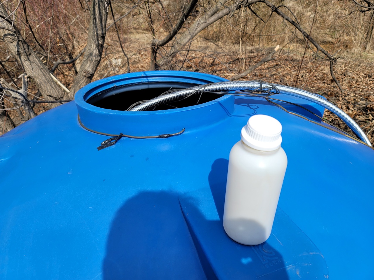 2022년4월07일 약10일이 지난후, 2차로 사포닌양액을 물과 배합하여 살포를 진행하고 있습니다.
